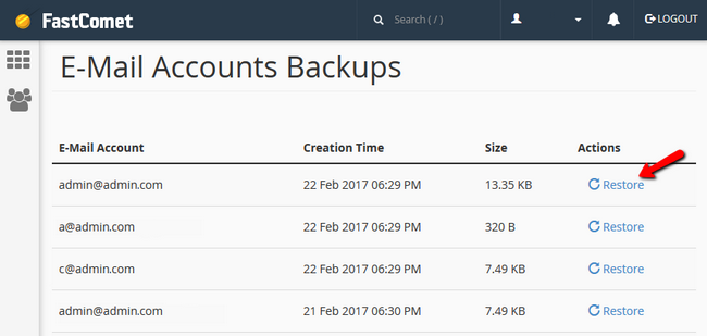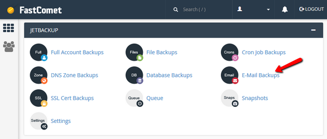 JetBackup یک رابط کاربری آسان برای بازیابی حساب های ایمیل ارائه می دهد. می توانید ویژگی پشتیبان گیری ایمیل را در بخش JetBackup سی پنل خود پیدا کنید.