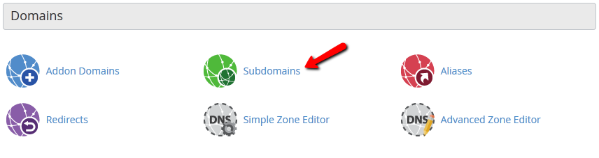 برای ایجاد یک زیر دامنه، وارد cPanel خود شوید و به بخش Domains بروید، جایی که نماد Subdomains را مشاهده خواهید کرد.