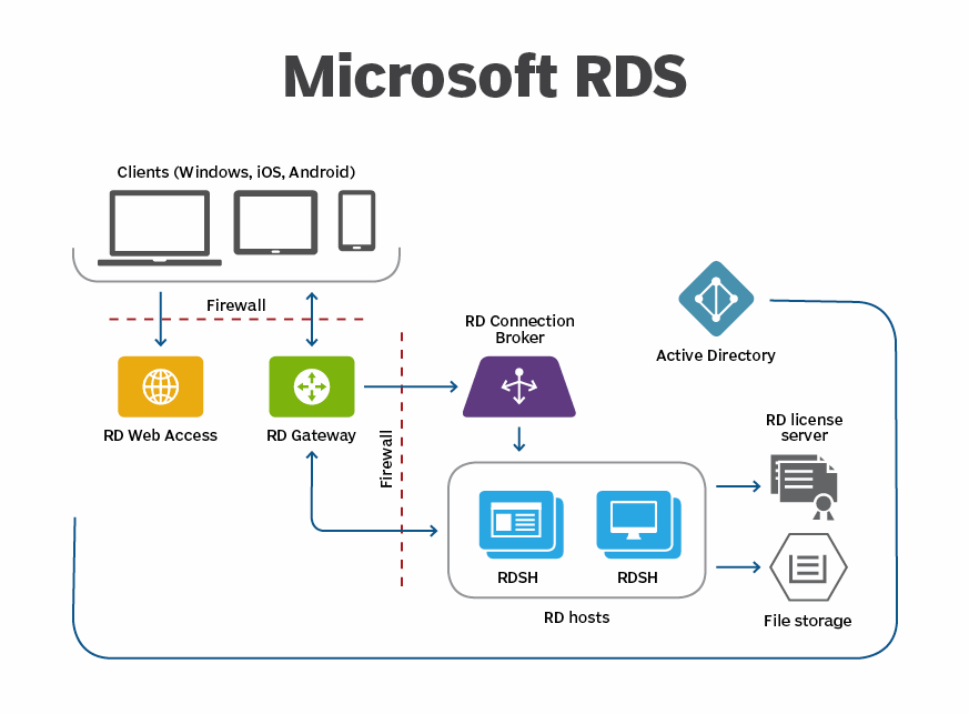 سرویس دسکتاپ از راه دور (RDS) یک فناوری است که به کاربران اجازه میدهد تا به سیستمهای دسکتاپ خود از راه دور و از طریق شبکه متصل شوند. در این روش، سختافزار و نرمافزار مورد نیاز برای اجرای سیستم عامل و برنامهها در یک سرور متمرکز قرار دارد و کاربران به طور مستقیم روی این سرور اجرا میکنند.